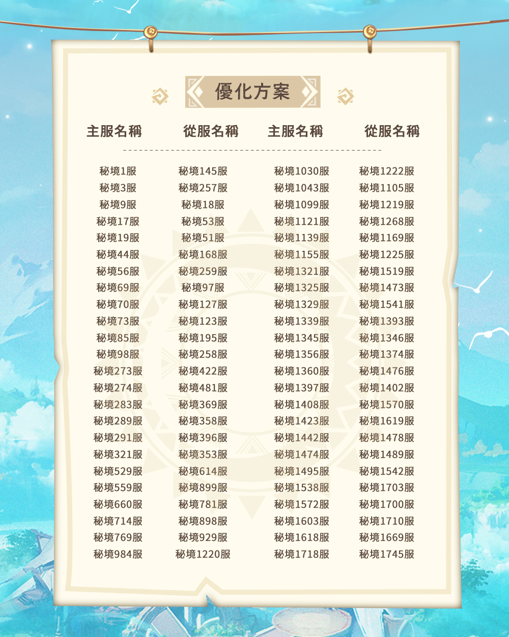 2、伺服器優化後,若有角色重名,系統將加上尾碼作以區分,因角色重名而導致角色名發生變化的,可獲得系統贈送的一張改名卡(通過郵件發送);